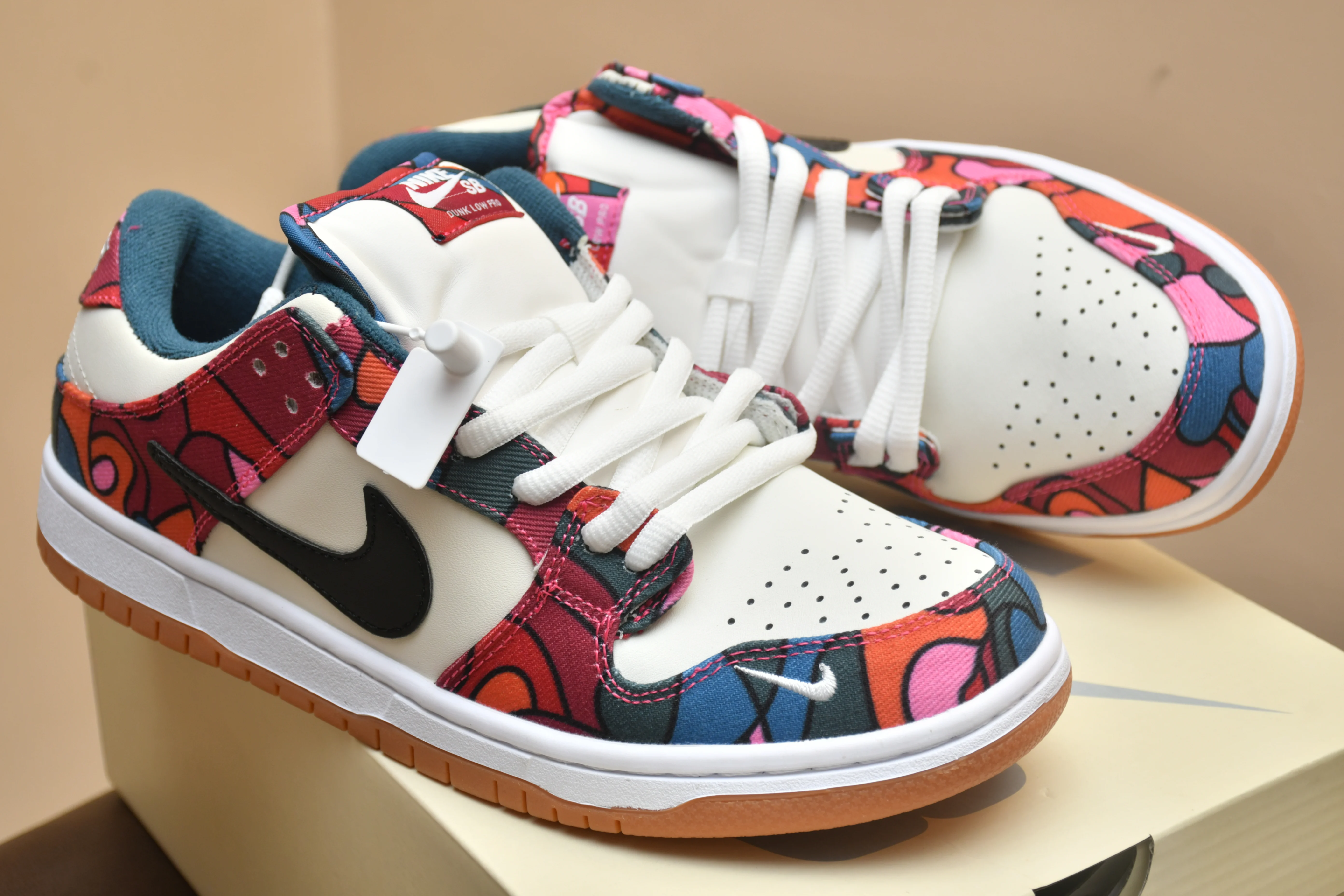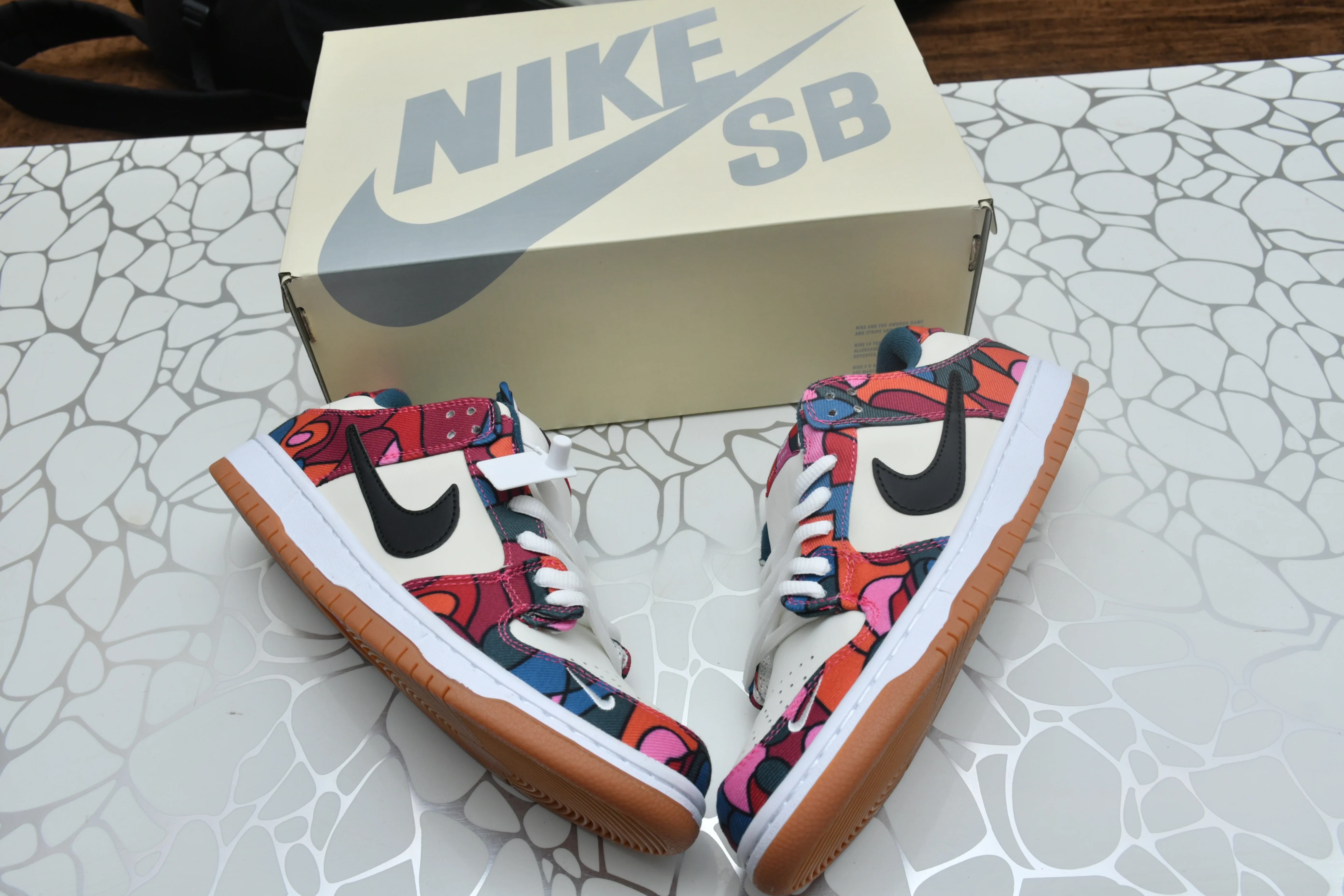 Description\r\nFeature Description\r\nBrand Nike\r\nModel SB Dunk Low\r\nCollaboration Parra\r\nColorway Multicolor (Based on image: White, Blue, Red, Pink, Yellow)\r\nSize Available in sizes 41-45\r\nQuality 10a Quality (High-quality replica)\r\nKey Features\r\n\r\nIconic Design: Features the classic Dunk silhouette with a vibrant Parra-designed upper.\r\nColorful Pattern: Unique and eye-catching multicolor pattern.\r\nComfortable Fit: Provides a comfortable and supportive fit for skateboarding and casual wear.\r\nHigh-Quality Materials: Constructed with premium materials for durability and style.\r\nLimited Availability: High demand and limited release make these sneakers highly sought after.